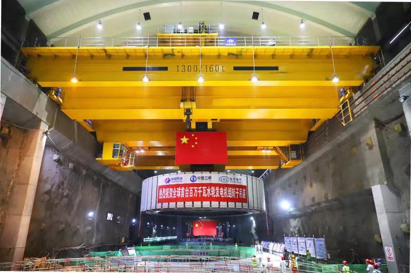 8月18日,三峽集團(tuán)白鶴灘水電站左岸1號(hào)機(jī)組轉(zhuǎn)子在太重生產(chǎn)的兩臺(tái)1300噸橋機(jī)并車(chē)抬吊牽引下緩緩上升,拉開(kāi)了世界首臺(tái)單機(jī)容量100萬(wàn)千瓦水輪發(fā)電機(jī)組轉(zhuǎn)子吊裝的序幕。經(jīng)過(guò)約300米的水平移動(dòng)后,轉(zhuǎn)子安全平穩(wěn)落入1號(hào)機(jī)組機(jī)坑,實(shí)現(xiàn)了與發(fā)電機(jī)軸的精準(zhǔn)對(duì)接。該轉(zhuǎn)子外圓直徑約16.2米,最大高度約4.1米,起吊重量達(dá)2100噸,是機(jī)組安裝過(guò)程中重量最大的核心部件。為了轉(zhuǎn)子等重要設(shè)備安裝、起吊過(guò)程的安全、穩(wěn)定,三峽集團(tuán)選擇了長(zhǎng)期合...